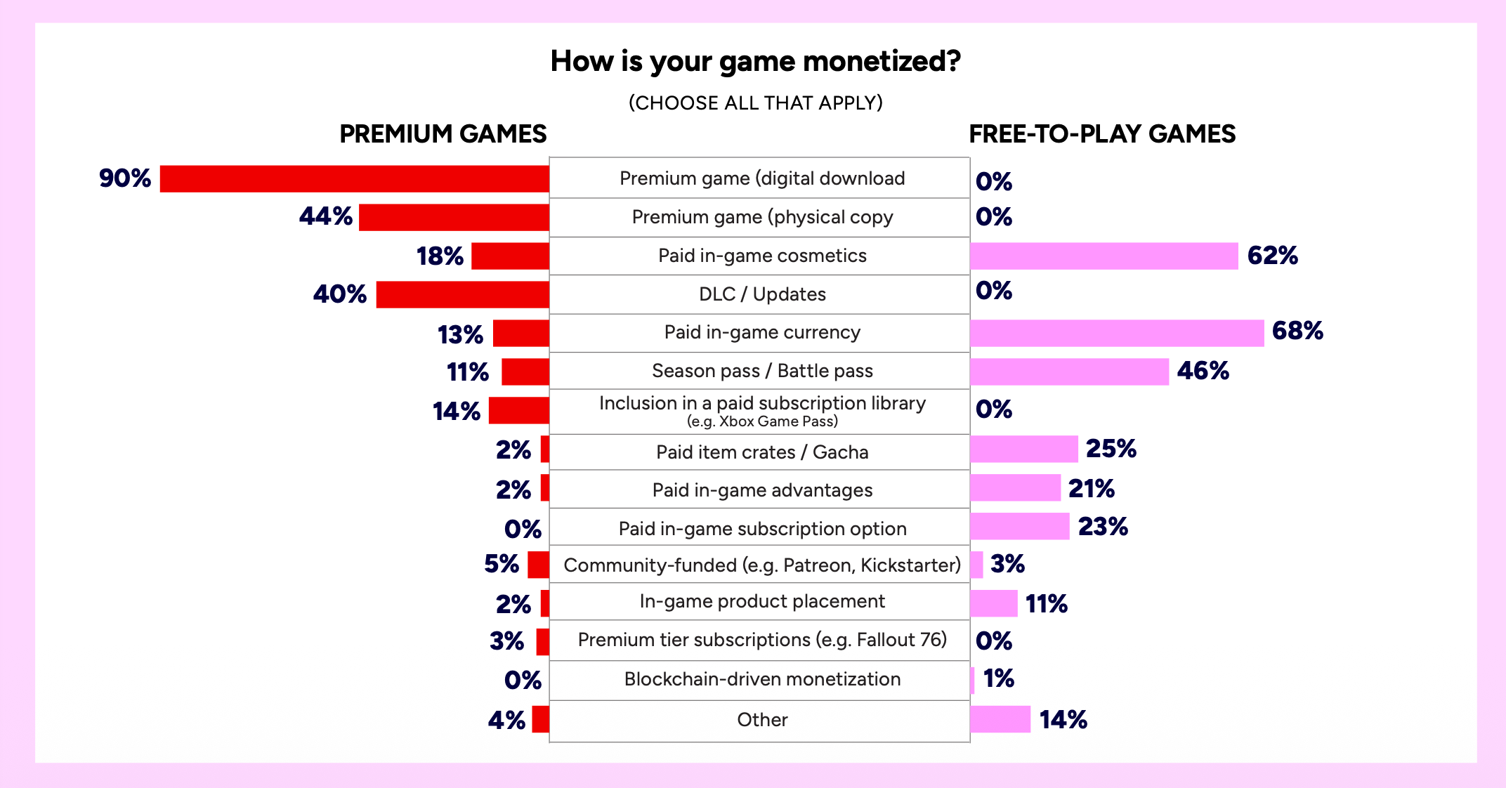 Among AAA studios, F2P is more common than in indie studios, at 33% versus 22%.
