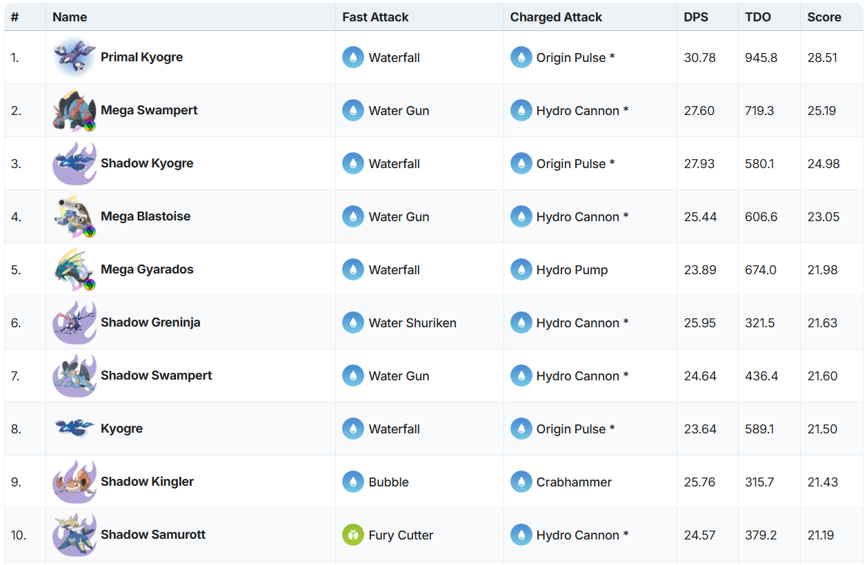 There are also other PvE relevant Pokémon featured in the event: Bulbasaur, Treecko, Charmander, Torchic, Squirtle and Mudkip. However, they were also recently featured in the Road to Kalos event and their PvE analysis can be found here— PvE Analysis for Road to Kalos Event.