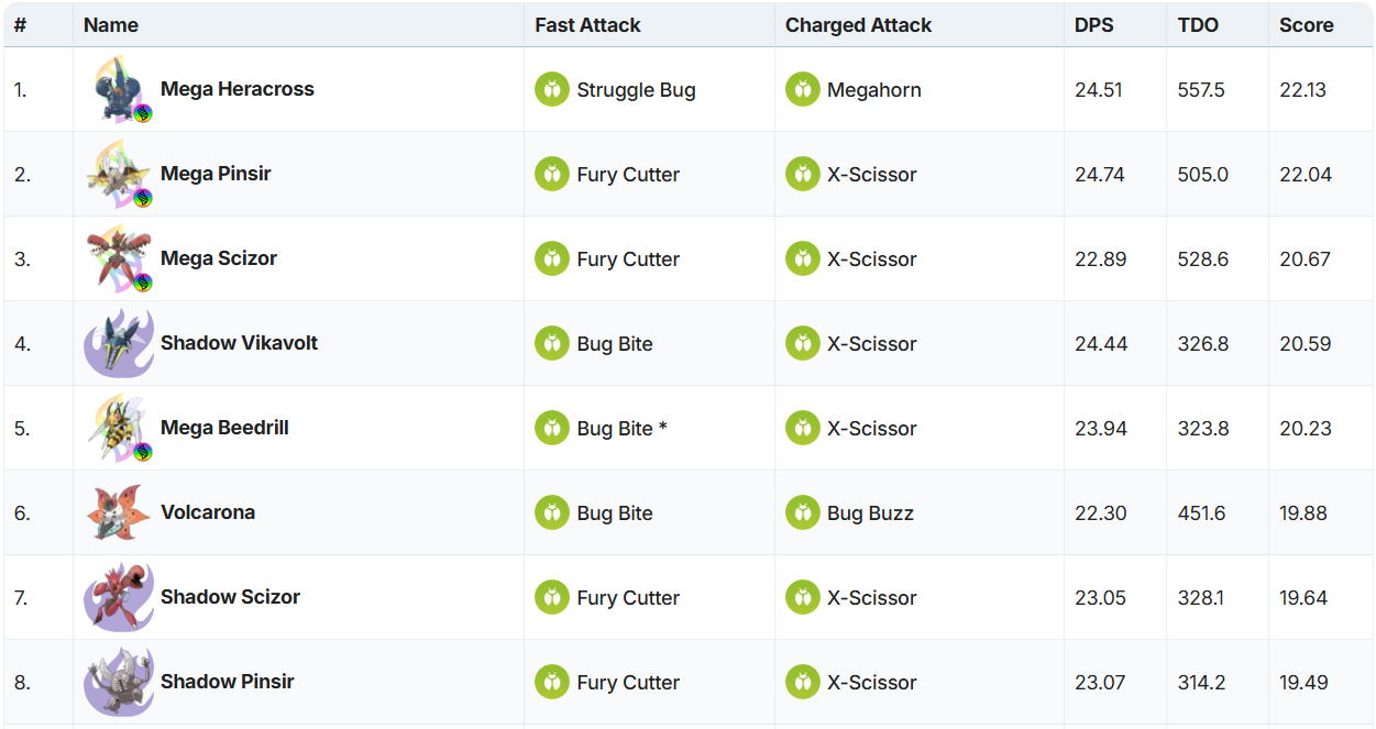 Both Shadow and Mega Scizor are among Top Bug Attackers in the game. Trainers may want to take this opportunity to catch some Scythers and be ready for Mega Malamar Super Mega Raids. Sadly, Scizor can’t replicate a similar performance as a Steel raid attacker.