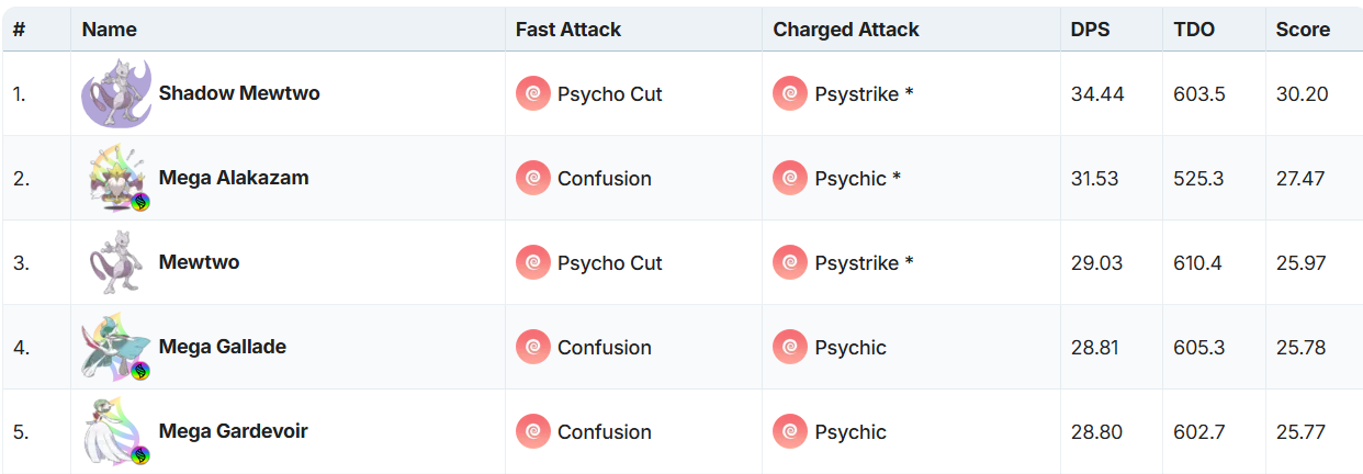 Gallade has exactly the same stats as Gardevoir but trades its Fairy typing to Fighting. But, unlike Gardevoir, Gallade by itself struggles a bit in the PvE meta. Mega Gallade on the other hand is a different story altogether, going a notch above Mega Gardevoir, among Top Psychic attackers.