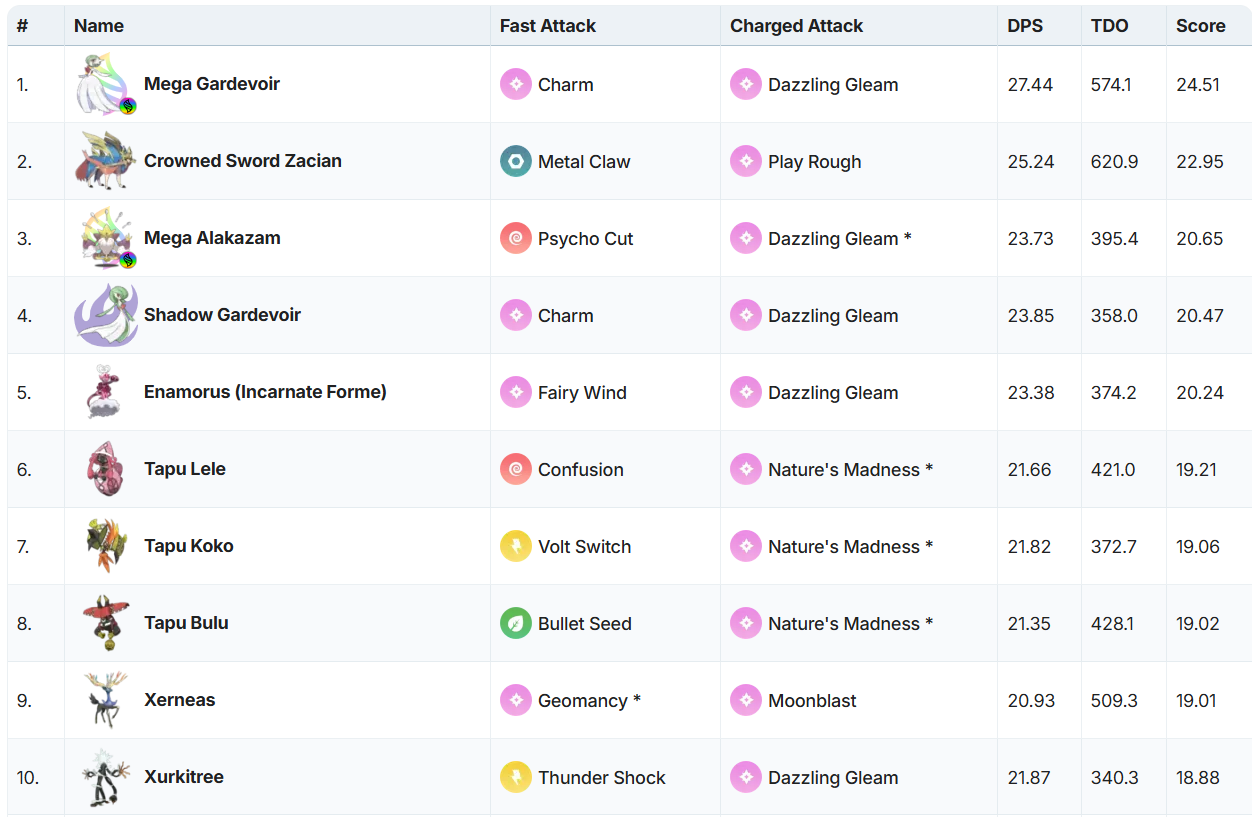 Mega Gardevoir reigns as the absolute best among Top Fairy Attackers, dismantling raid bosses with overwhelming force and team-wide Fairy empowerment—its elegance shines in prolonged raids. It can double up as a Psychic raid attacker as well.